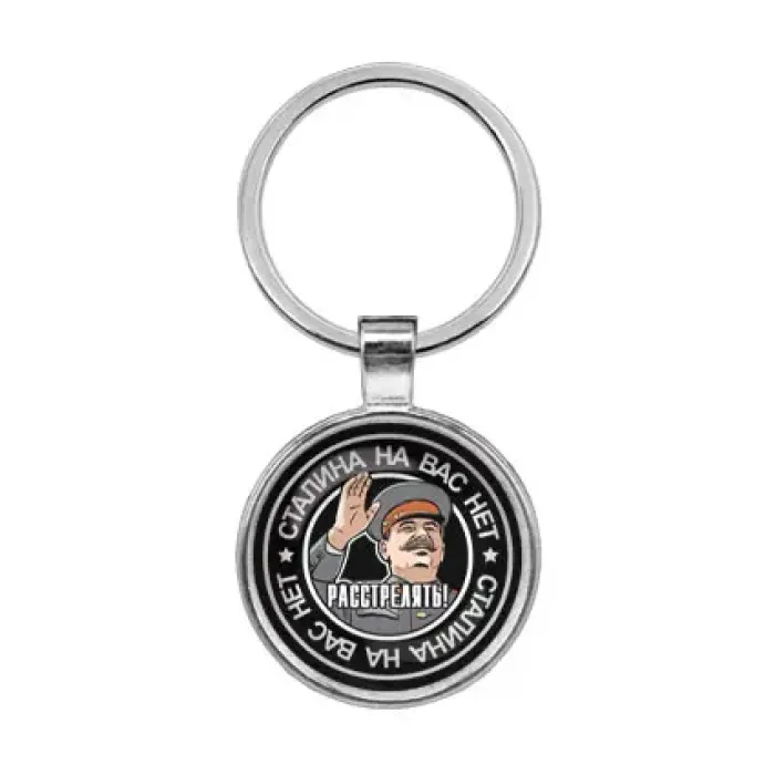 Брелок из бижутерного сплава с покрытием под серебро и сталью. Изображение защищено выпуклой стеклянной линзой.