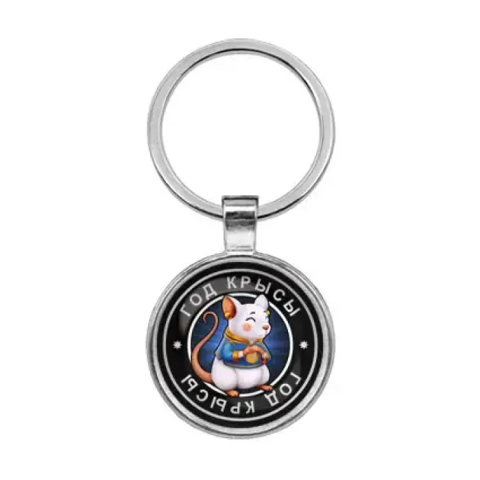 Брелок Восточный гороскоп - год Крысы представляет собой уникальный аксессуар, который станет отличным подарком для ценителей восточной символики. Этот стильный брелок выполнен из бижутерного сплава с покрытием под серебро и дополнен элементами из стали и стекла. Его диаметр составляет 28 мм, а изображение защищено выпуклой стеклянной линзой, что придаёт ему особую привлекательность.