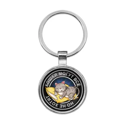 Брелок с изображением кошки. Изготовлен из бижутерного сплава со стеклянной линзой.