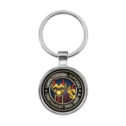 Брелок из бижутерного сплава и стекла с изображением под выпуклой линзой.