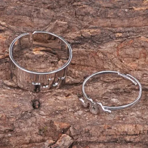 Парные безразмерные кольца из бижутерного сплава с волнообразным дизайном.