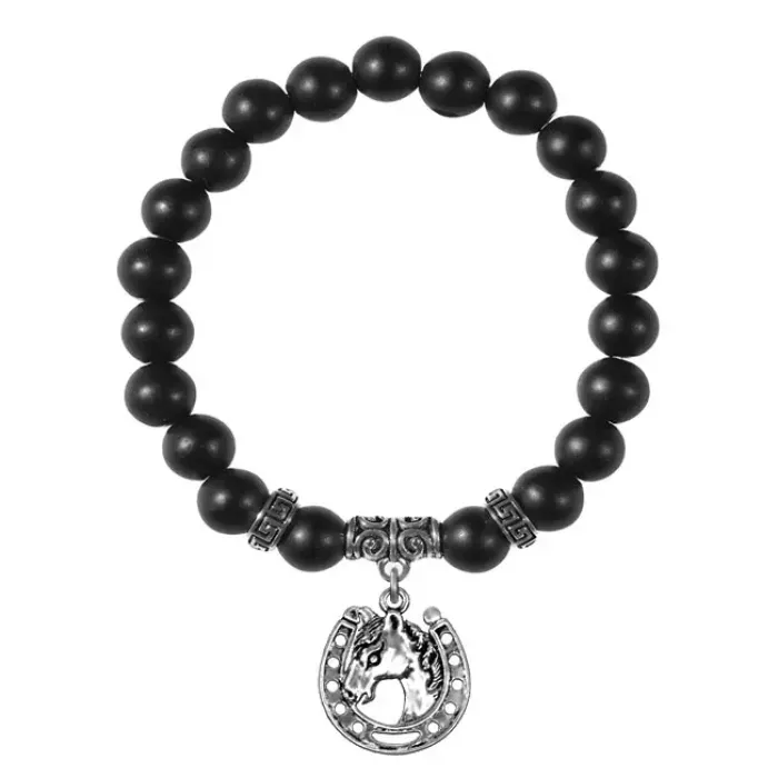 Браслет-амулет из синтетического шунгита с подвеской в виде подковы.