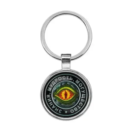 Брелок из бижутерного сплава со сталью и покрытием под серебро. Изображение защищено выпуклой стеклянной линзой.