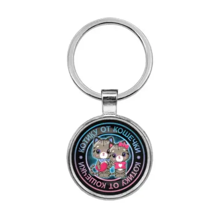 Брелок Котику от кошечки — это оригинальный аксессуар, который станет прекрасным подарком для любителей домашних животных. Изготовленный из бижутерного сплава с покрытием под серебро и стали, он сочетает в себе стиль и долговечность. Стеклянная линза защищает изображение, придавая ему яркость и выразительность. Диаметр брелка составляет 28 мм, что делает его компактным и удобным для ношения на ключах или сумке. Упакован в прозрачный пакет, что добавляет элемент презентабельности.