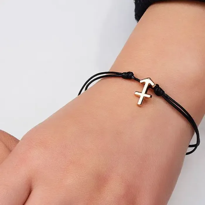 Браслет на чёрной нити с символом знака зодиака Стрелец — это стильный аксессуар, который несёт в себе не только эстетическую ценность, но и глубокий культурный смысл. Он традиционно используется как оберег, приносящий удачу и защищающий своего владельца.