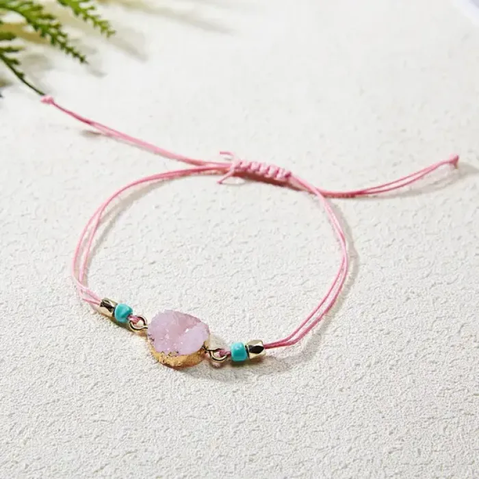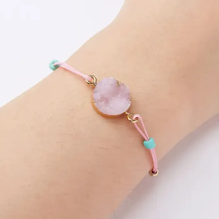 Плетеный браслет с друзами, цвет розовый BS496-02