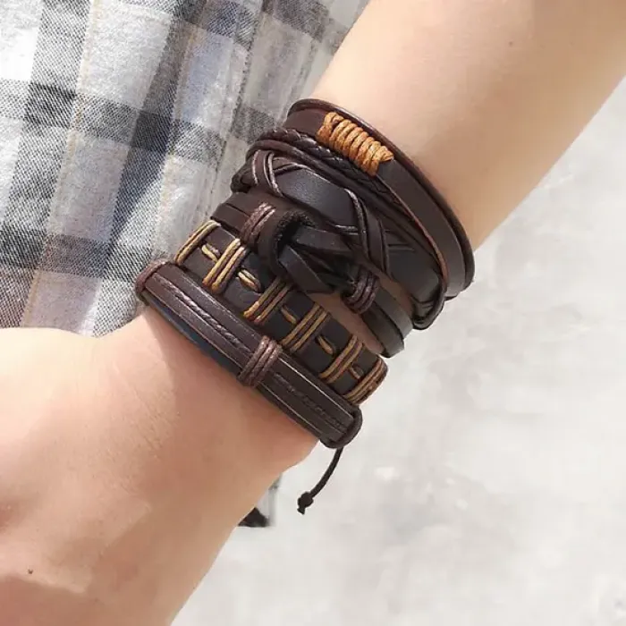 Набор кожаных браслетов, цвет коричневый BSN025