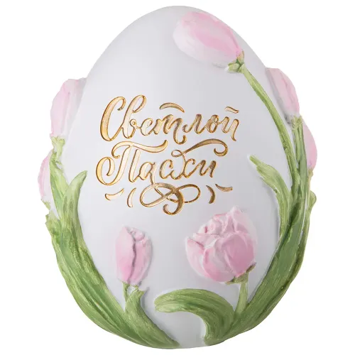 Декоративная фигурка яйцо от бренда Lefard станет элегантным украшением интерьера. Изделие выполнено из полистоуна и покрыто нежными весенними цветами, что придаёт ему особую привлекательность. Золотой текст с поздравлением добавляет изделию праздничности и утончённости.