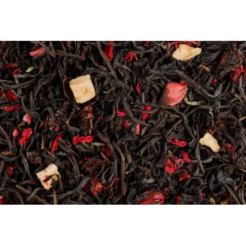 Крупнолистовой черный чай с добавлением кусочков вишни и яблока создаёт яркий фруктово-ягодный букет. Напитку свойственна приятная кислинка, напоминающая вишневый сок, а цветки граната придают купажу изысканные цветочные оттенки и нарядный вид.