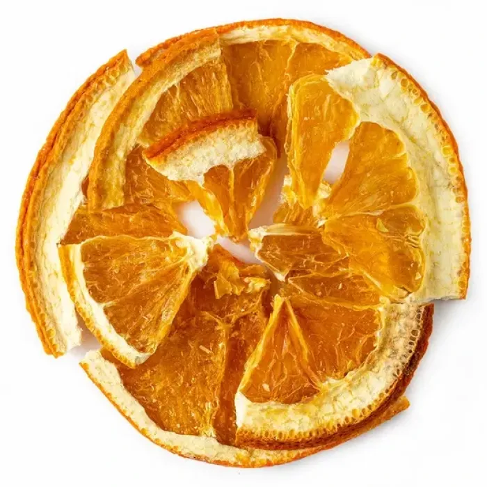 Солнечные сегменты сушёного апельсина дарят напиткам яркий цитрусовый аромат и вкус с лёгкой сладостью и приятной кислинкой. Эти ароматные дольки создают тёплую, летнюю атмосферу и служат прекрасным украшением для чая, глинтвейна или десертов.