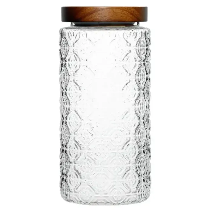 - Материал: рельефное стекло, дерево- Объём: 900 мл- Конструкция крышки: деревянная с уплотнителем