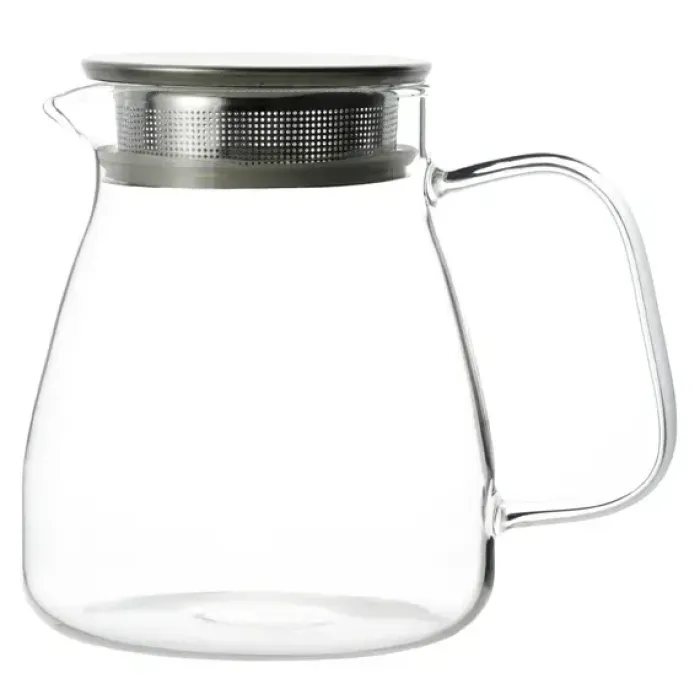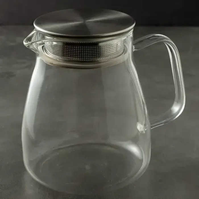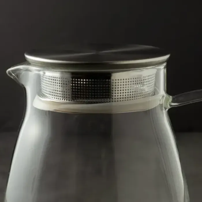 Корпус чайника изготовлен из закалённого стекла, устойчивого к высоким температурам. Крышка выполнена из металла и оснащена ситом, выполняющим функцию фильтра. Эргономичная ручка спроектирована для удобного и безопасного использования.