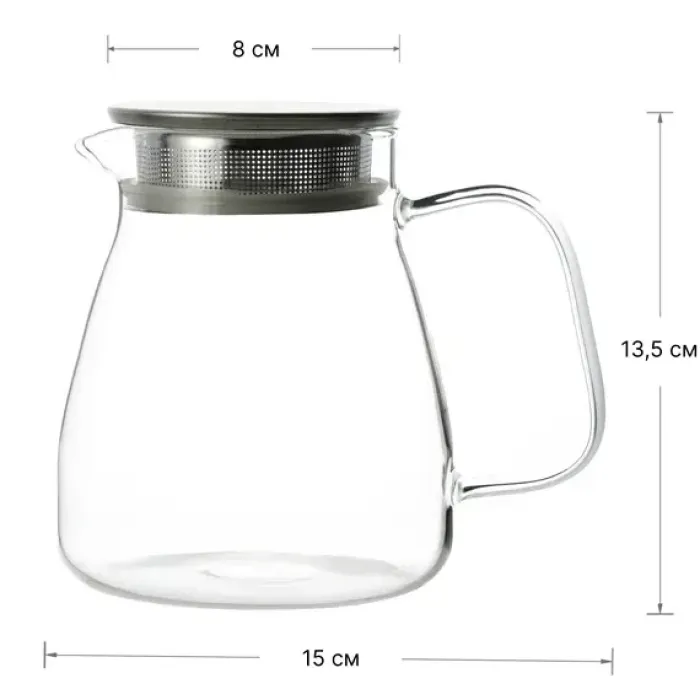 Стеклянный заварочный чайник с металлической крышкой-ситом предназначен для приготовления чая. Прозрачный корпус позволяет визуально контролировать процесс заваривания, а встроенный фильтр обеспечивает чистый настой без чаинок.