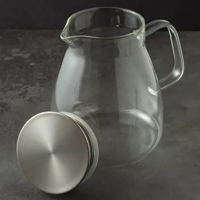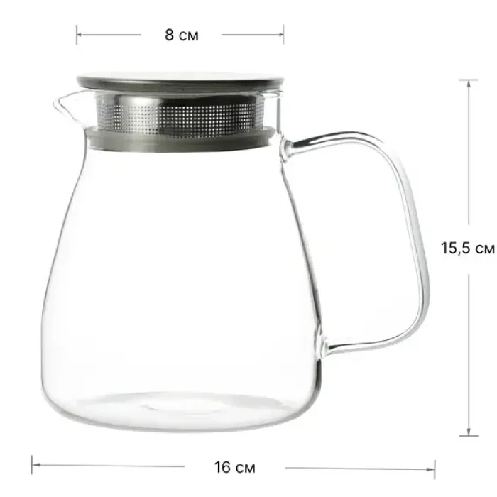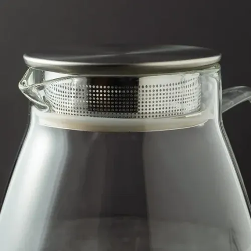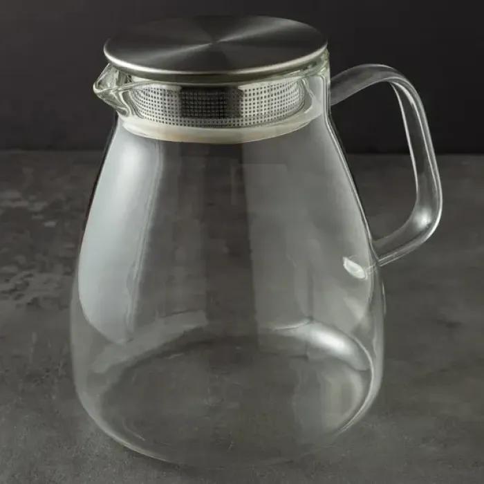 Стеклянный заварочный чайник с металлической крышкой-ситом, 1 л