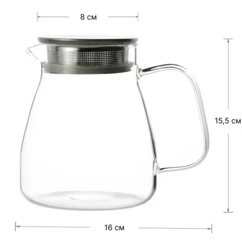 Стеклянный заварочный чайник предназначен для приготовления чая. Прозрачный корпус позволяет наблюдать за процессом заваривания, а встроенное сито в крышке предотвращает попадание чаинок в напиток.