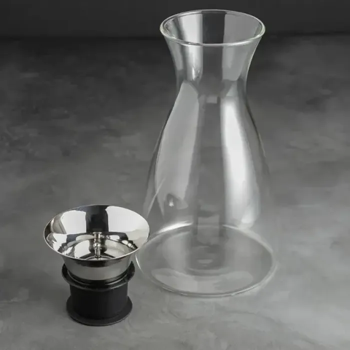 Корпус кувшина выполнен из стекла, устойчивого к температурным перепадам. Крышка имеет разборную конструкцию, что упрощает процесс очистки. Фильтр в крышке обеспечивает чистоту напитка, а конструкция гарантирует надежное крепление без случайного открытия.