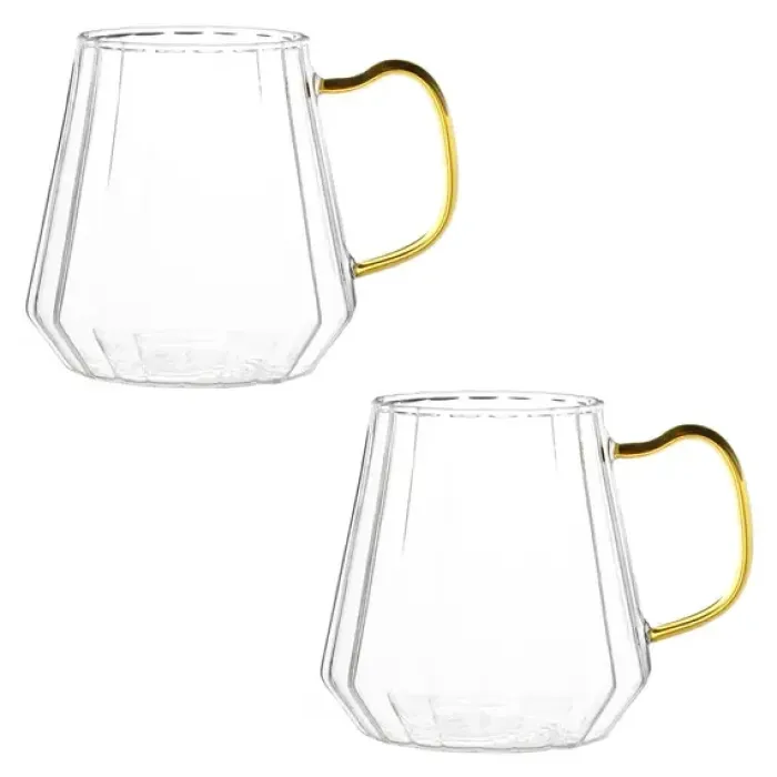 Кружка из рельефного стекла объёмом 350 мл предназначена для подачи горячих и холодных напитков. В набор входят две одинаковые кружки, что обеспечивает удобство парного использования.