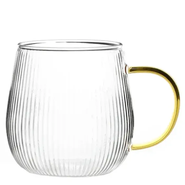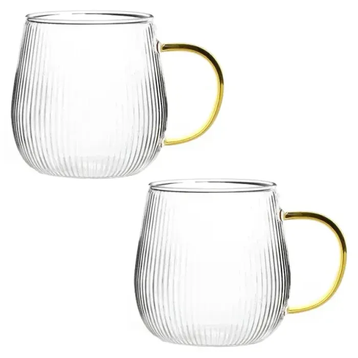Кружки выполнены из прочного стекла, устойчивого к температурным перепадам. Рельефная поверхность стенок выполняет функциональную роль, улучшая сцепление и предотвращая скольжение в руке.