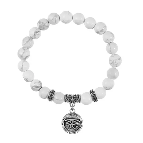 Браслет из натурального камня кахолонг с подвеской в виде символа Око Ра.