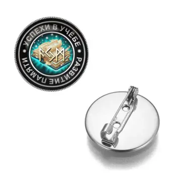 Значок 'Успехи в учёбе и развитие памяти' — сувенирный аксессуар из бижутерного сплава с покрытием под серебро и выпуклой стеклянной линзой.
