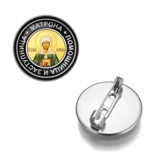 Значок «Святая блаженная Матрона Московская» — это не только стильный аксессуар, но и символ духовной поддержки. Он выполнен из бижутерного сплава с покрытием под серебро и дополнен стеклянной линзой, которая защищает изображение. Диаметр значка составляет 26 мм, что делает его удобным для ношения на одежде или сумке.