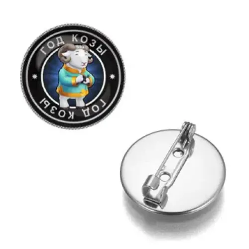 Значок Восточный гороскоп - год Козы является символом удачи и благополучия. Этот изысканный аксессуар выполнен из бижутерного сплава с покрытием под серебро и дополнен стеклянной линзой, которая защищает изображение. Диаметр значка составляет 26 мм, что делает его компактным и удобным для ношения. Упакован в прозрачный пакет, он станет отличным подарком или стильным дополнением к любому наряду. Значок традиционно ассоциируется с положительными качествами, присущими знаку Козы — мудростью и терпением.