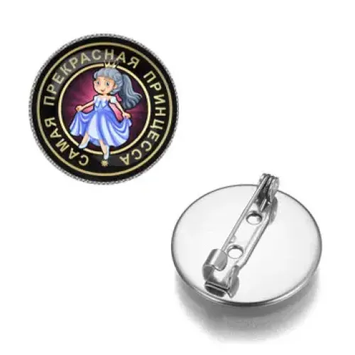 Значок "Самая прекрасная принцесса" — это стильный аксессуар, который станет отличным подарком для любителей оригинальных украшений. Он символизирует красоту и грацию, а также может служить напоминанием о важности внутреннего света.