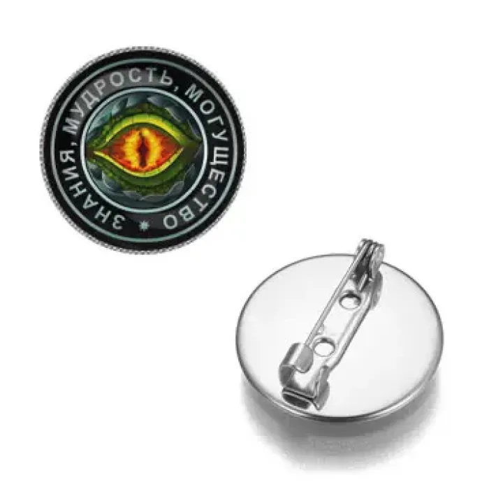 Значок «Глаз дракона» — сувенирный аксессуар из бижутерного сплава со стеклянной линзой.