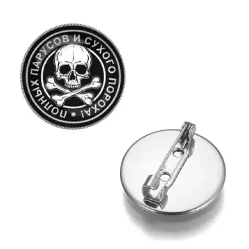 Значок «Весёлый Роджер» — сувенирный аксессуар из бижутерного сплава с изображением под стеклянной линзой.