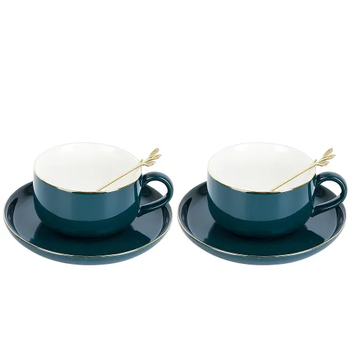 Фарфоровый чайный набор на 2 персоны 4 предмета с ложками Royal line. Emerald v=350 мл