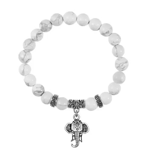 Браслет-амулет из натурального камня кахолонг с подвеской в виде слона.