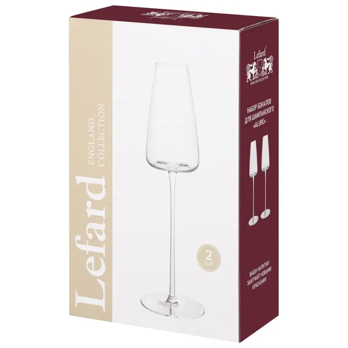 Набор из двух бокалов для шампанского предназначен для подачи игристых вин. Изделия изготовлены брендом Lefard из высококачественного экологичного стекла, не содержащего свинец.