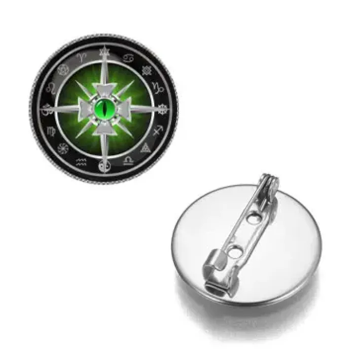 Значок с изображением креста, глаза и клинков. Изготовлен из бижутерного сплава.