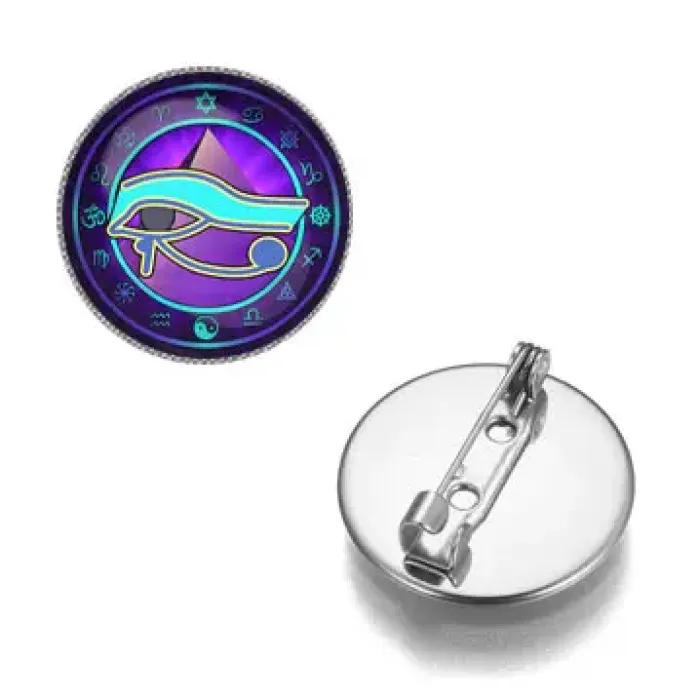 Значок Глаз Гора — сувенирный аксессуар из бижутерного сплава с покрытием под серебро и стеклянной линзой.