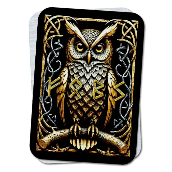Магнитный сувенир из алюминия с руническим дизайном для размещения на металлических поверхностях.