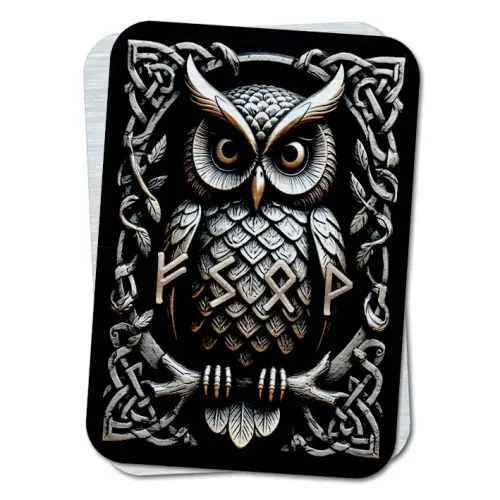 Магнит для крепления на холодильник или другую металлическую поверхность. Изготовлен из алюминия с нанесённым руническим изображением.