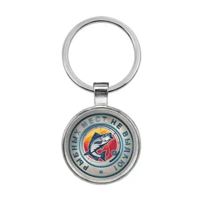 Брелок для ключей из бижутерного сплава и стекла с тематической надписью «Рыбных мест не выдаю».