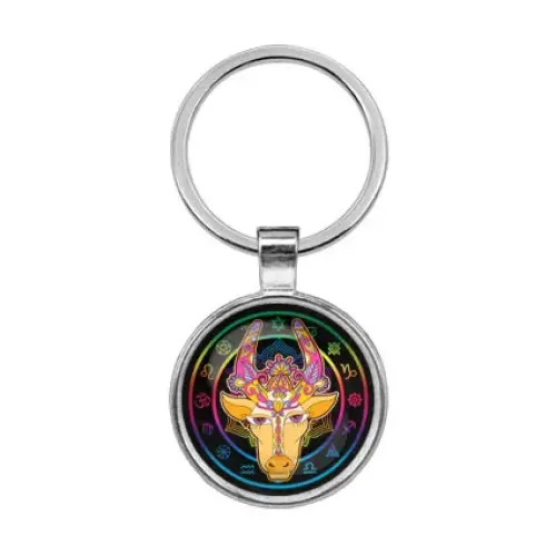 Брелок «Священная корова» из бижутерного сплава со стеклянной линзой.