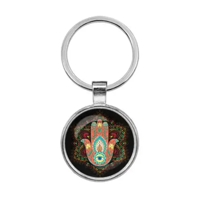 Брелок-сувенир из бижутерного сплава и стекла с изображением Хамсы.