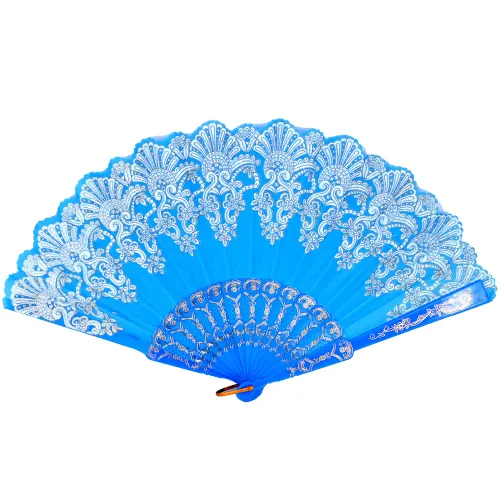 Веер, ткань + пластик, 23х42см, цвет голубой VR016-04