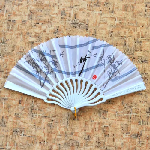 Веер Бамбук, ткань + пластик, 23х42см, цвет чёрный VR018-02