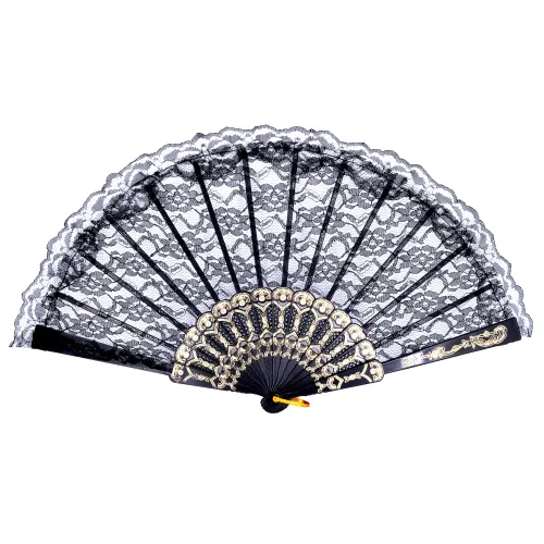 Веер, ткань + пластик, 23х42см, цвет чёрный VR020-01