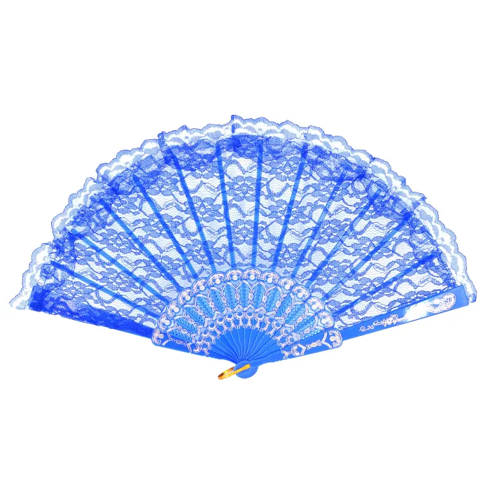 Веер, ткань + пластик, 23х42см, цвет синий VR020-03