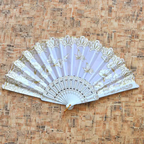 Веер Цветы, пластик+ткань, 23х42см, цвет белый VR021-01