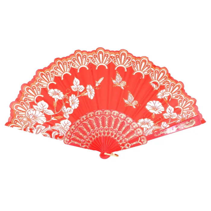 Веер Цветы, пластик+ткань, 23х42см, цвет красный VR021-02