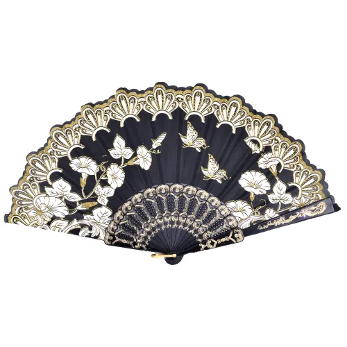 Веер Цветы, пластик+ткань, 23х42см, цвет черный VR021-03