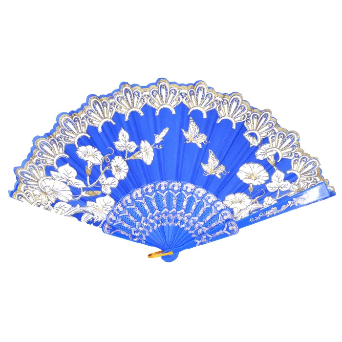 Веер Цветы, пластик+ткань, 23х42см, цвет синий VR021-07