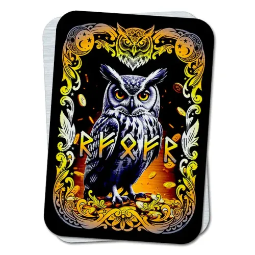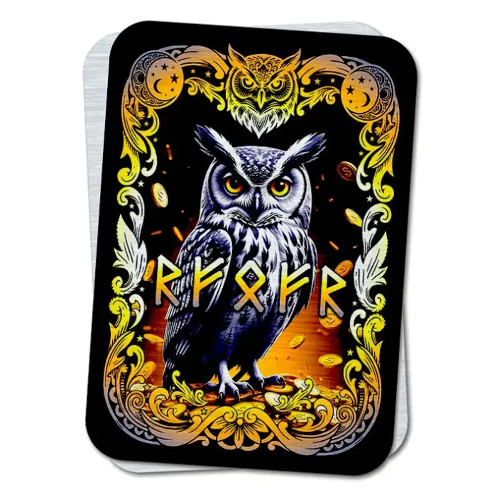 Металлическая карта-талисман с руническим дизайном для ношения в бумажнике или кошельке.