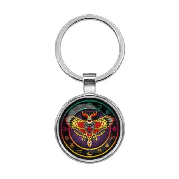 Брелок в виде медальона с изображением мотылька «Мёртвая голова». Изготовлен из бижутерного сплава и стали.