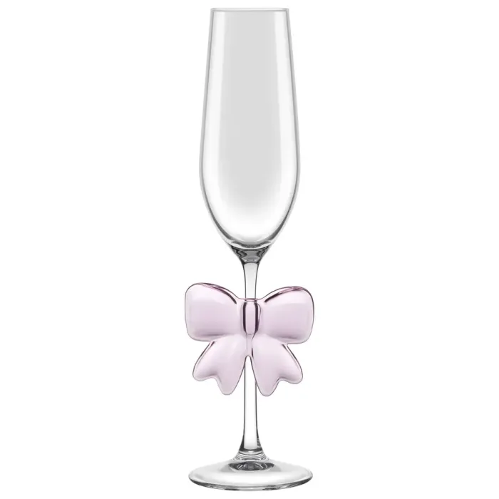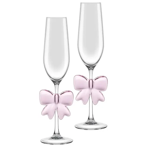 Бокалы выполнены из тонкого стекла, что обеспечивает их лёгкость и визуальную элегантность. Узкая вытянутая форма классического флюта способствует сохранению пузырьков углекислого газа в напитке. Поверхность гладкая, без декоративных элементов.